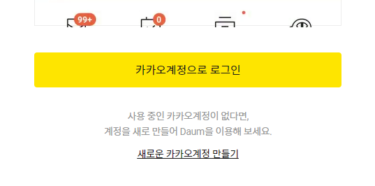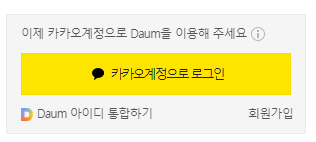 위 사진은 daum.net 메인 홈페이지에 있는 카카오 계정으로 로그인 영역의 참고사진입니다. 해당 버튼을 이용하여 로그인 페이지를 찾을 수 있는데요. 자세히 살펴보면 '회원가입'으로 연결되는 링크도 있습니다. 해당 링크를 활용하셔도 도움이 될 수 있겠죠.