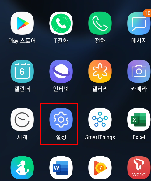 1. 휴대폰 디바이스에서 설정앱을 실행합니다. 검색을 이용하셔도 되고, 어플 관리 창에서 확인하셔도 됩니다. 사진을 참고해 주세요.