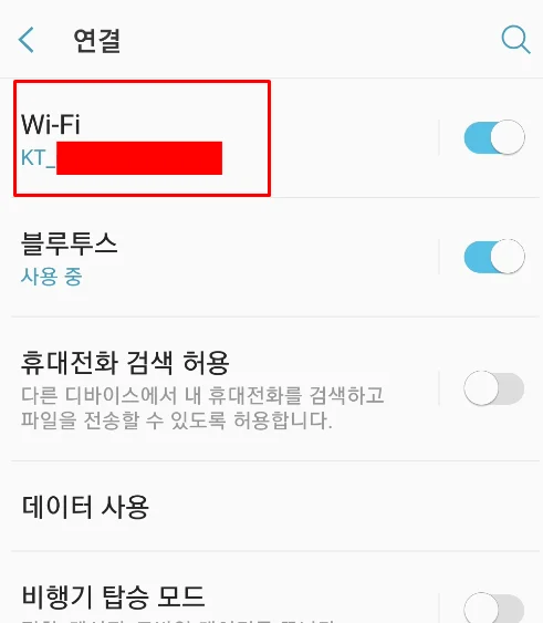 3. 연결 메뉴 중 Wi-Fi를 선택합니다.
